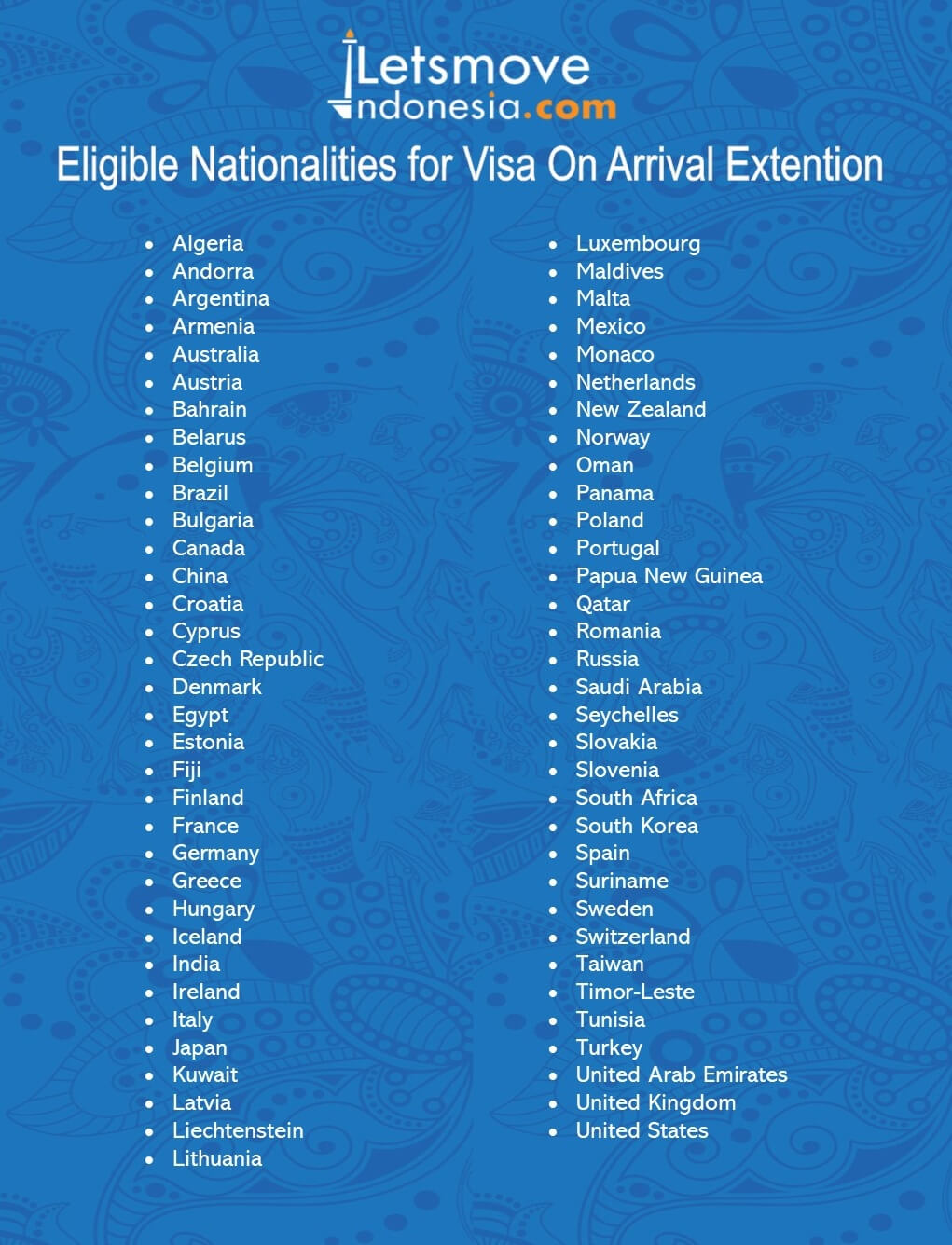 List Visa On Arrival Indonesia 2024. The procedures to obtain the visa on arrival are fairly simple, provided you have the three required items: Top countries include papua new guinea, guam, northern mariana islands and new caledonia.